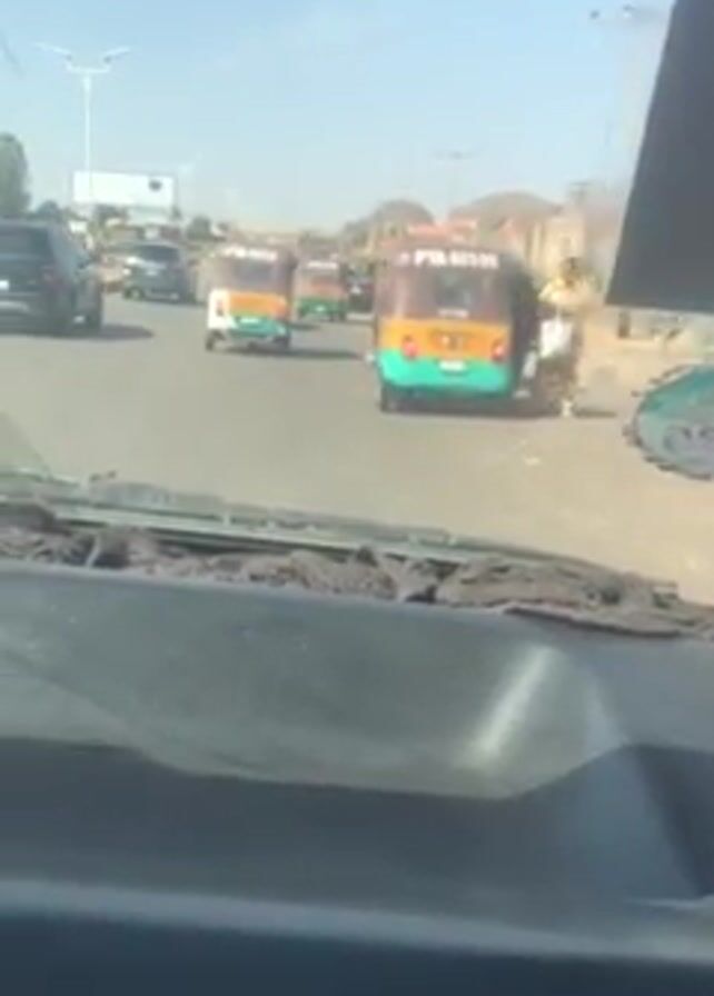 The video, shot from inside a vehicle, shows a street scene in what appears to be a sunny, developing area