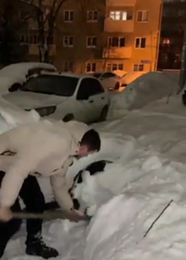 - "At night, a person uses a shovel to dig out a white car from a thick layer of snow" by FM-KTJV22, licensed under CC BY 4.0