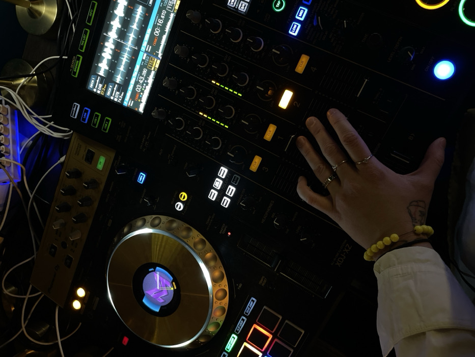 - "A high-angle forensic shot captures a human hand actively operating a Pioneer XDJ-XZ DJ console in a dimly lit indoor environment, identified as Moscow, Russia" by FM-3b4qx2, licensed under CC BY 4.0