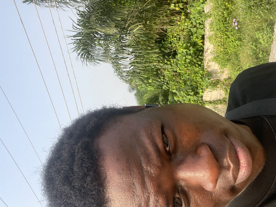 The image depicts an outdoor scene in the city of Itoga, Nigeria, under a clear, light blue sky