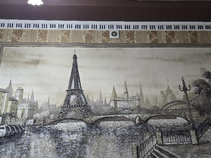 - "A large, monochrome mural depicting a Parisian cityscape is the central subject of this image, located within a room in Tashkent, Uzbekistan" by FM-ffoK62, licensed under CC BY 4.0