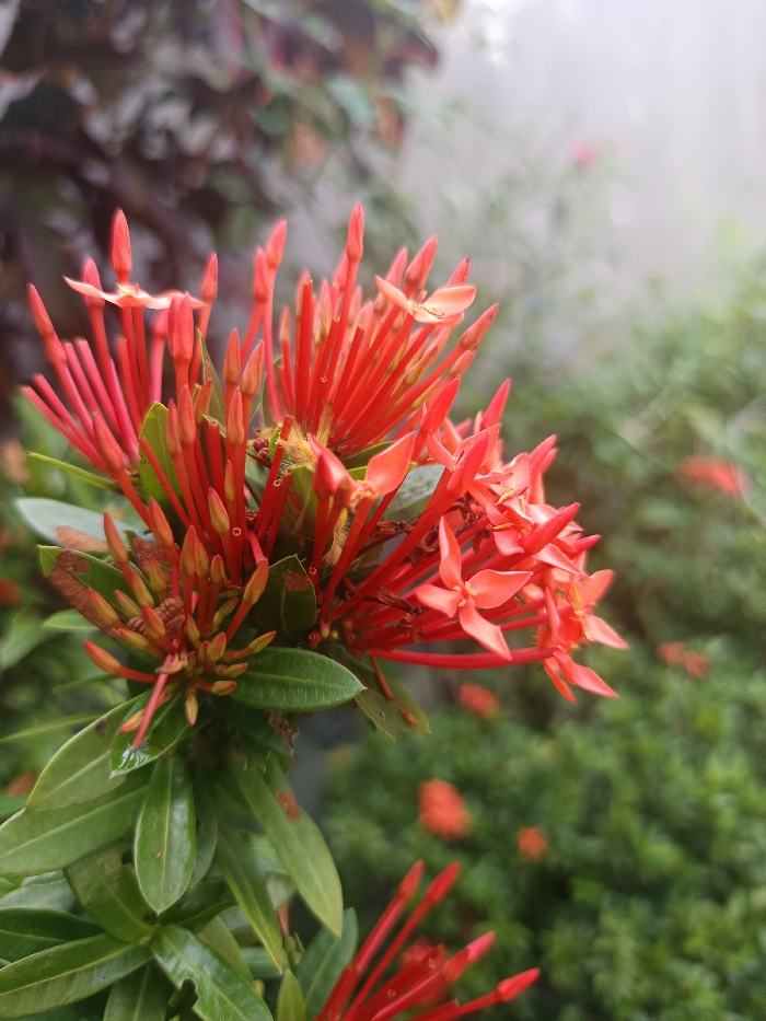- "The image displays a close-up, shallow-depth-of-field photograph of vibrant red flowers and buds belonging to a flowering plant, likely an Ixora species" by FM-PvkdH3, licensed under CC BY 4.0