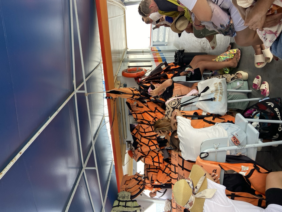 The image captures the interior of a passenger vessel in Pattaya City, Thailand, during daylight hours