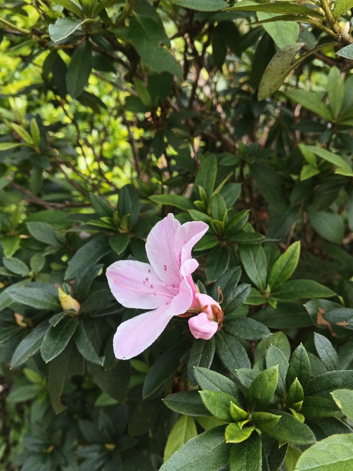 - "A pink azalea flower is nestled amidst dark green foliage" by FM-RJkRR2, licensed under CC BY 4.0