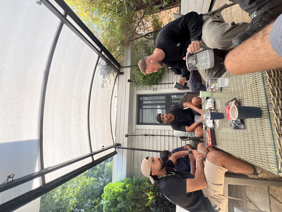 - "The image depicts an outdoor social gathering of five adult males on a patio in Ga'ash, Israel" by FM-26D7C2, licensed under CC BY 4.0