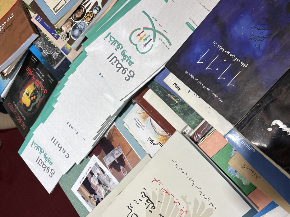 - "The image displays a close-up, high-angle view of numerous books stacked and fanned out on a surface, presumed to be within a building in Al-Ghizlaniya, Syria" by FM-ihvq52, licensed under CC BY 4.0