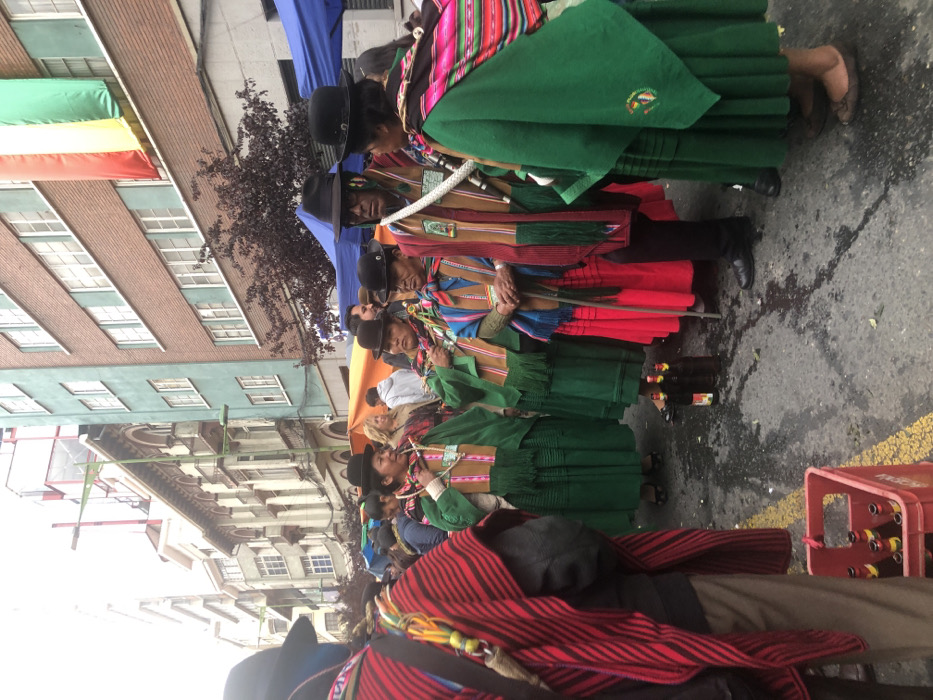 - "A line of people in traditional Bolivian attire stand on a city street" by FM-OkUX82, licensed under CC BY 4.0