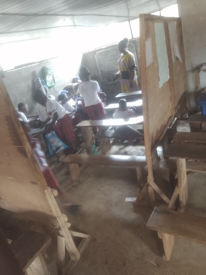 The image depicts an indoor classroom scene in the city of Unknown, Unknown