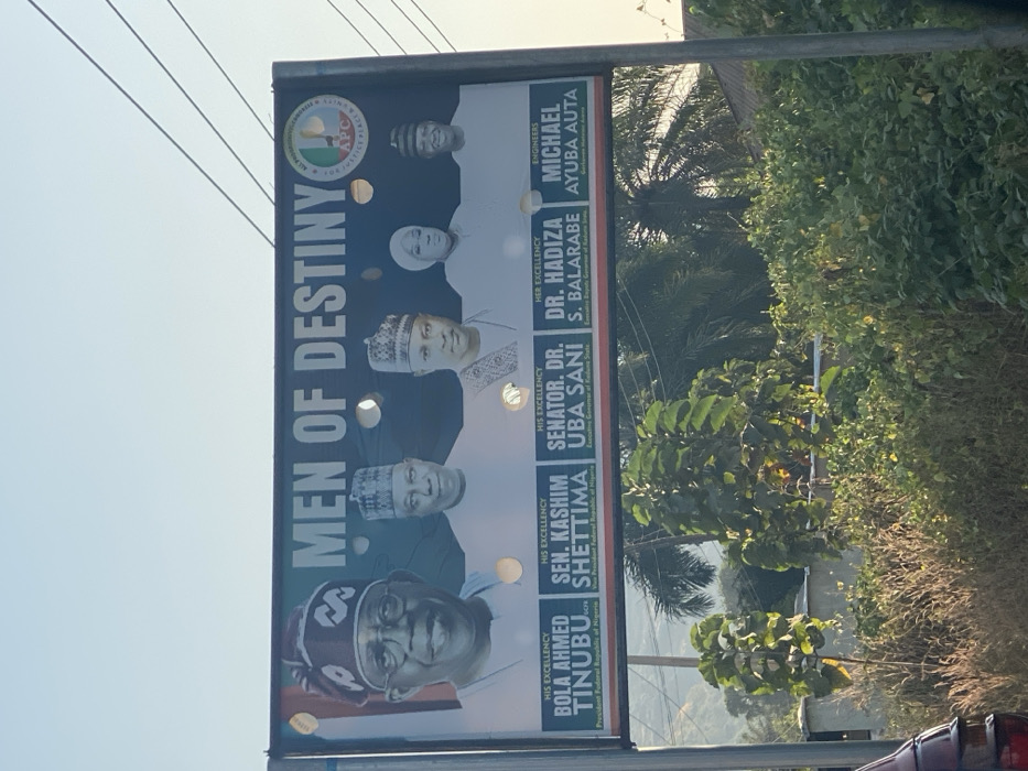 political billboard featuring portraits of Nigerian politicians with the phrase "Men of Destiny"