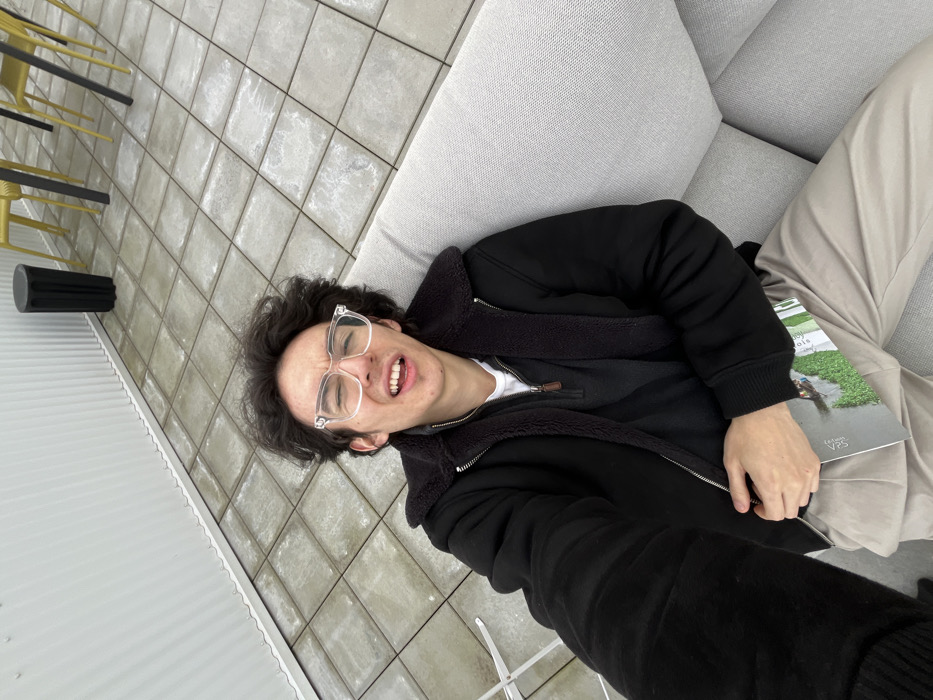 - "A young adult male is depicted in a selfie, seated outdoors on a light grey upholstered sofa on what appears to be a paved rooftop terrace in Villeneuve-d'Ascq, France" by FM-NQrs03, licensed under CC BY 4.0