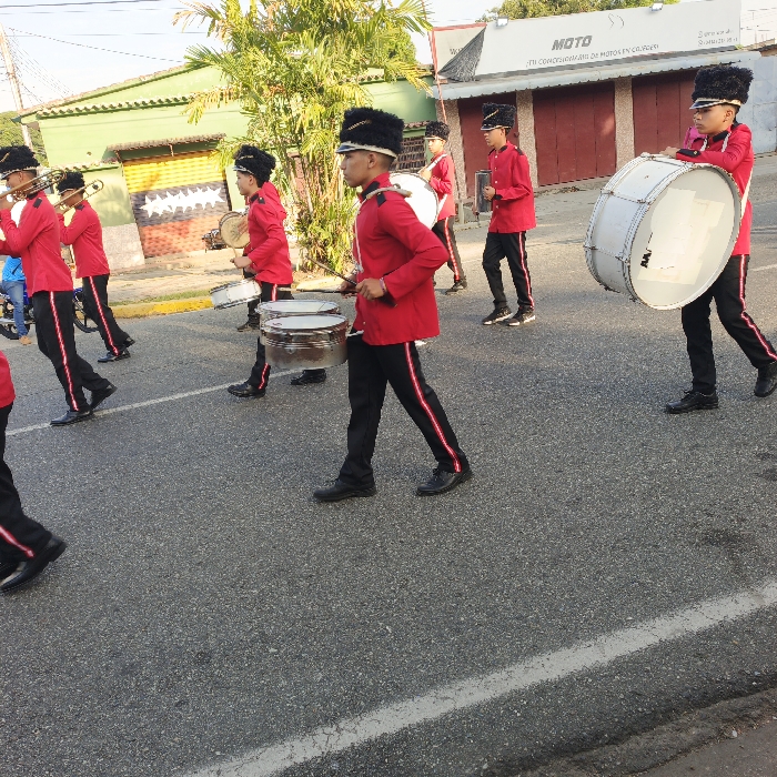 - "The image displays a marching procession of eight young males moving from left to right on a grey asphalt street in Tinaquillo, Venezuela" by FM-ALdt42, licensed under CC BY 4.0