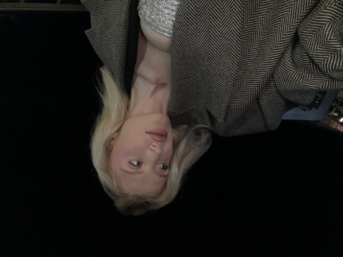 - "A woman with blonde hair and pale skin is featured, wearing a sparkly top and a herringbone blazer" by FM-IjUpS2, licensed under CC BY 4.0