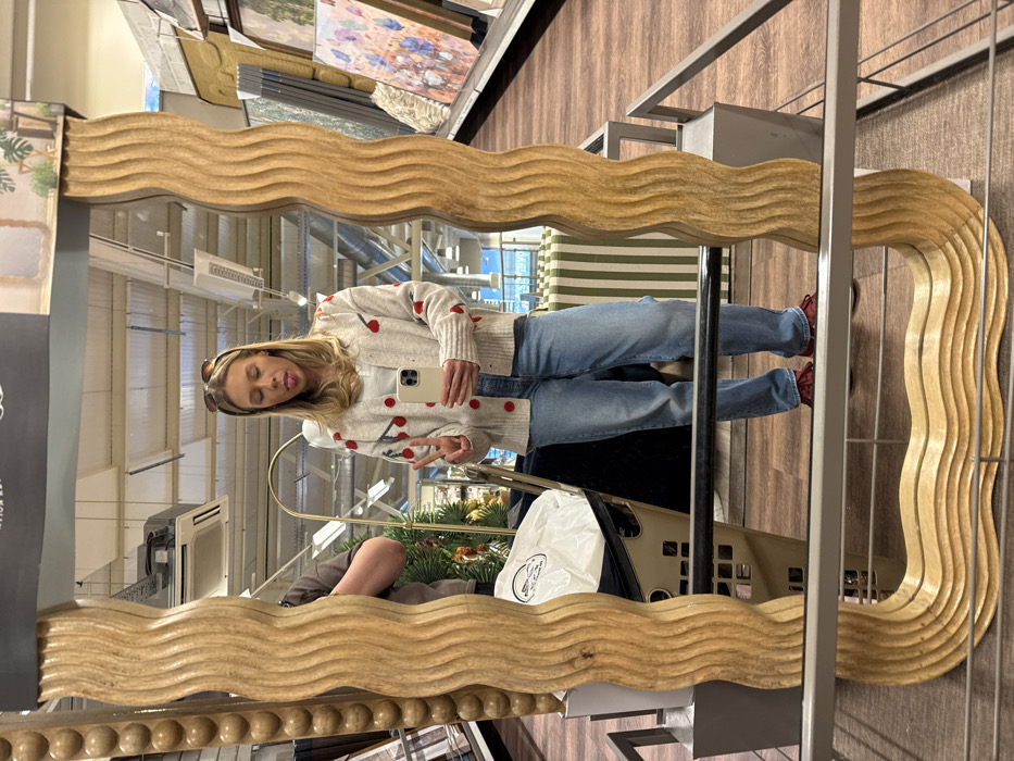 A blonde female is captured in a mirror selfie within a Dunelm Mill store, located at North Farm Retail Park, Tunbridge Wells, United Kingdom