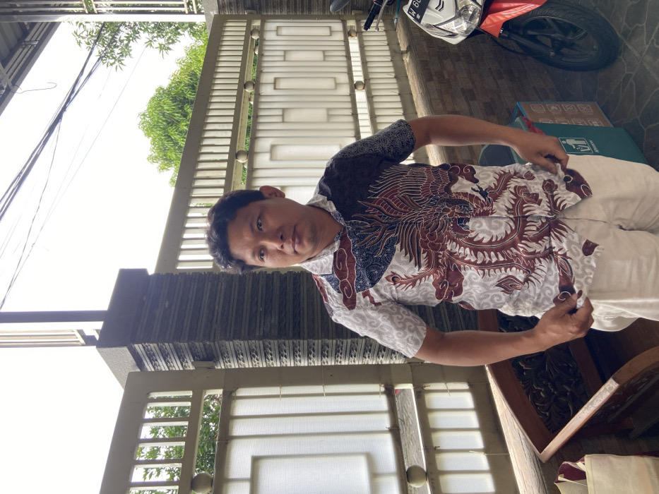 - "A man in a printed shirt and light-colored pants stands in front of a white gate and a stone pillar" by FM-htxI33, licensed under CC BY 4.0