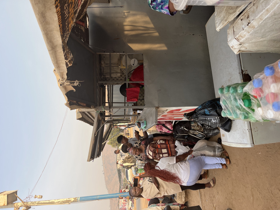 - "The scene depicts an active roadside commercial area in Nyanya, Nigeria, under a clear, possibly hazy, daylight sky" by FM-99j2E2, licensed under CC BY 4.0