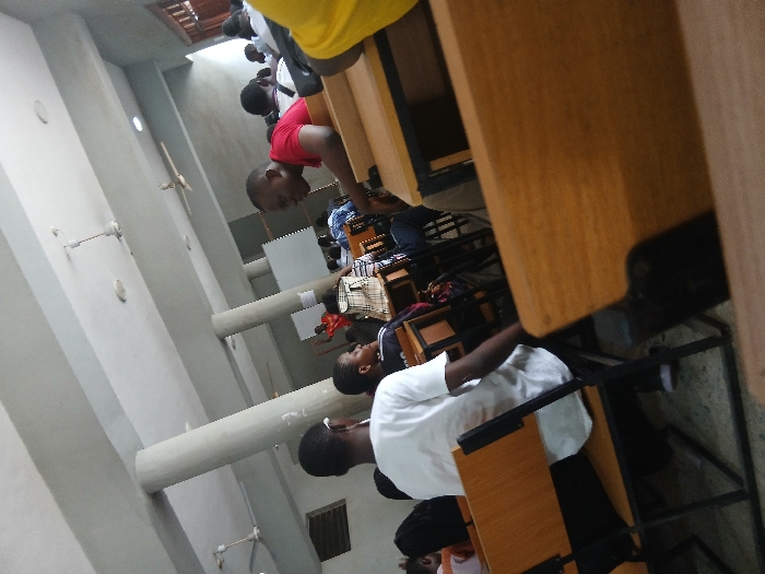 The image depicts an interior scene within a classroom or lecture hall, located in the city of Unknown, Unknown