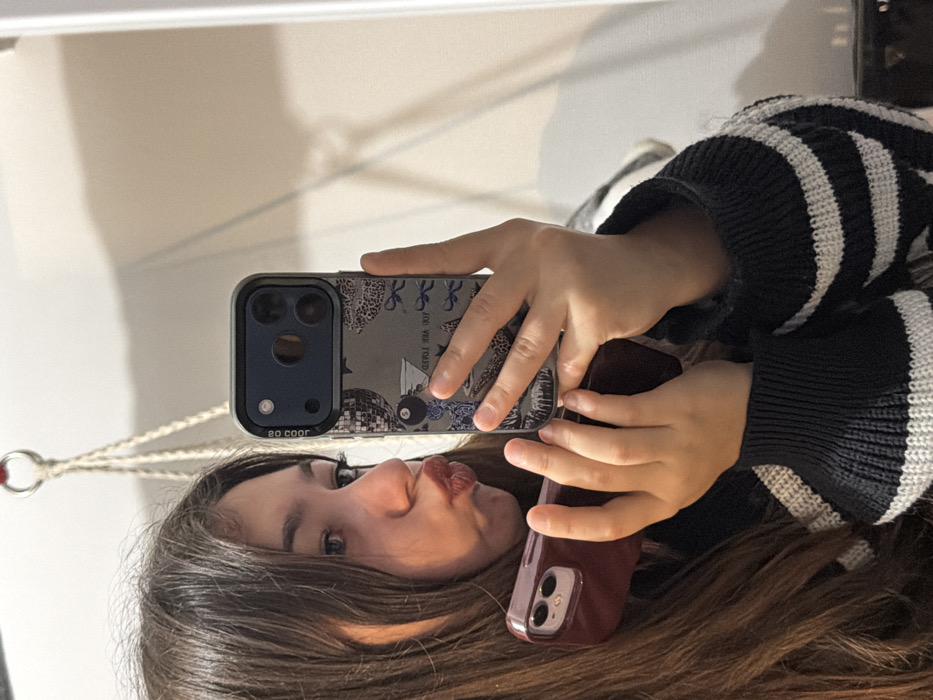 - "The image displays a young female subject captured in a mirror selfie indoors, located in Bouxwiller, France" by FM-2p7Yo2, licensed under CC BY 4.0