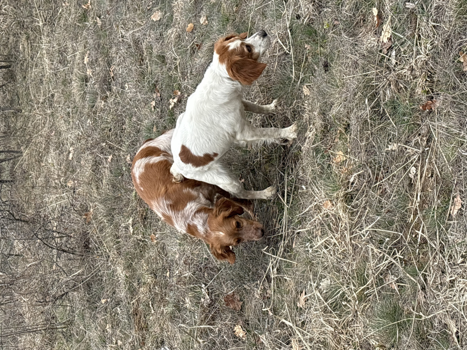 - "In Novo Selo, Bulgaria, two dogs are positioned on dry, uneven ground covered with a mix of light brown dormant grass, some green blades, and scattered fallen leaves" by FM-KLeNw1, licensed under CC BY 4.0