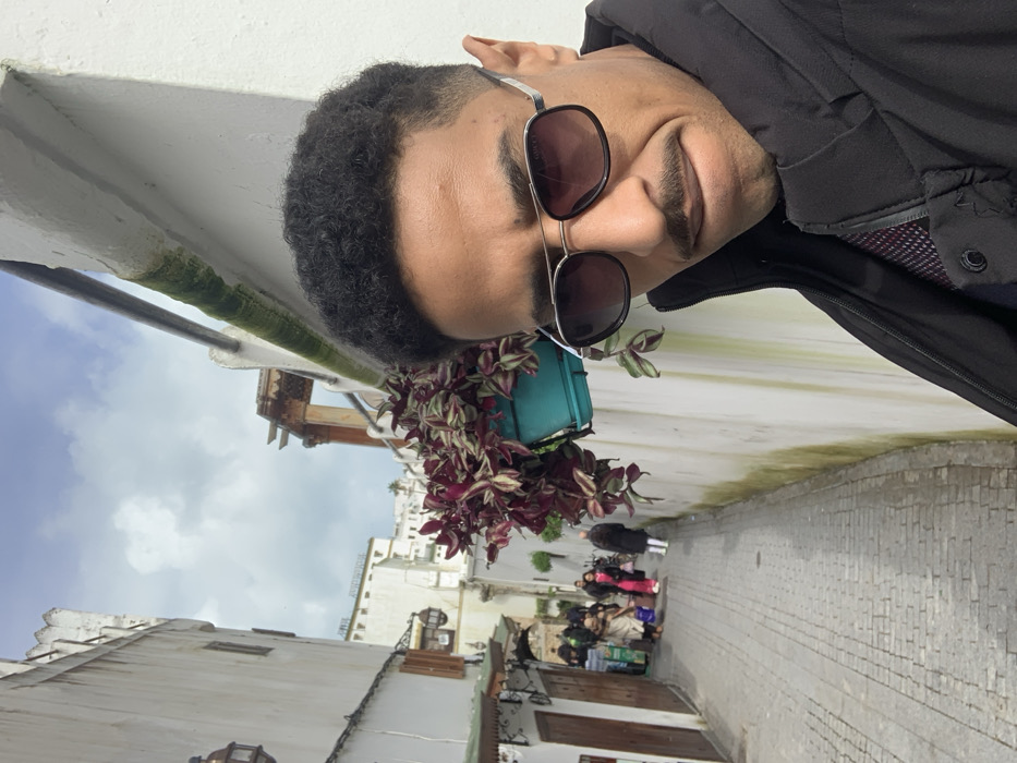 - "The image depicts a male subject taking a selfie on a narrow, cobbled street within the Medina of Tangier, Morocco, under an overcast sky" by FM-Gn7EC2, licensed under CC BY 4.0