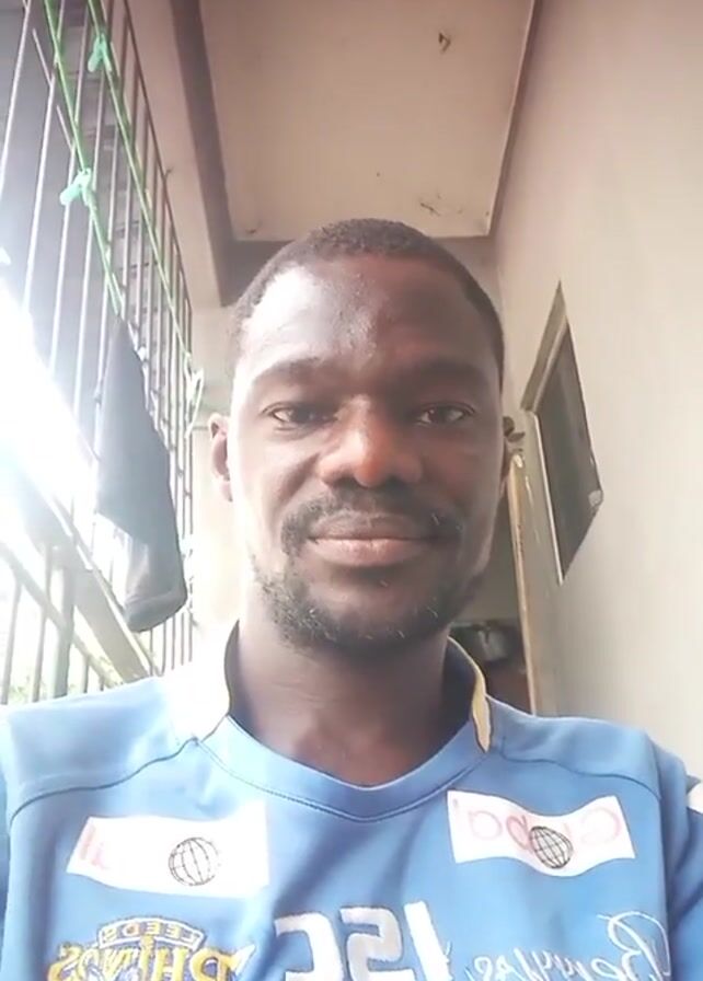 The video starts with a medium shot of a Black man wearing a blue jersey with yellow trim and logos, facing the camera