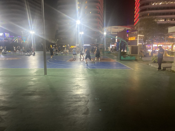 - "The scene depicts an outdoor basketball court at night, located in Huangpu District, China" by FM-ikS7J2, licensed under CC BY 4.0