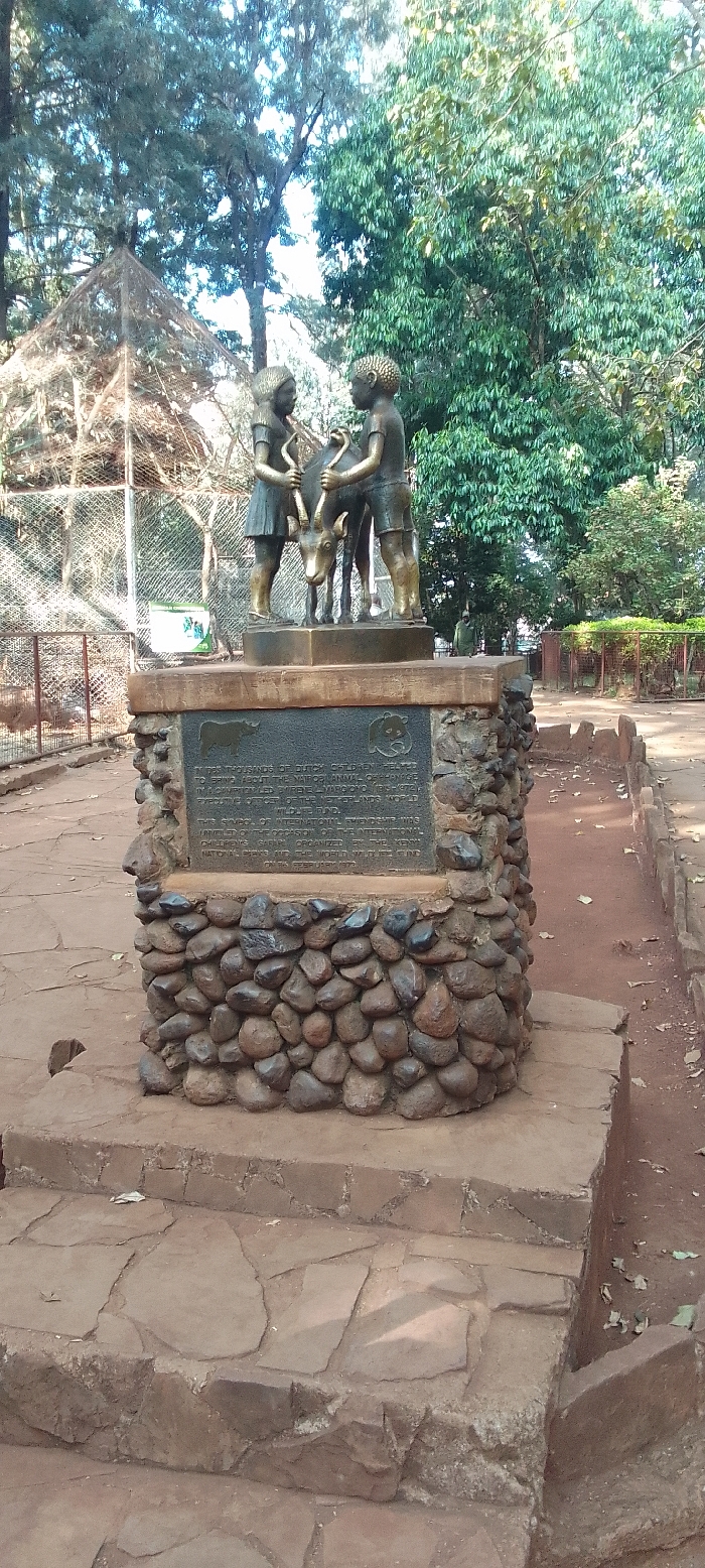 This image presents a bronze monument situated in an outdoor park or museum-like setting within the city of Athi River ward, Kenya