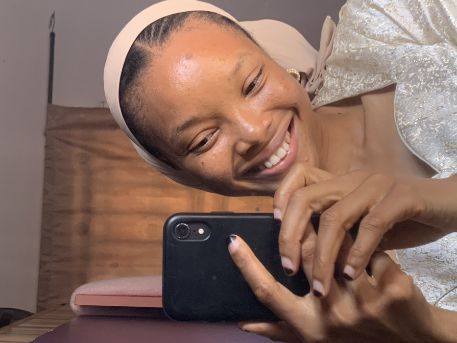 A female individual captures a mirror selfie indoors in the city of Ilorin, Nigeria; the precise location within the city is not discernible from the image