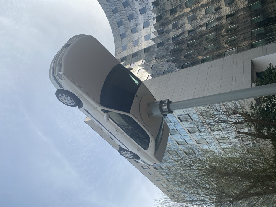 - "A white passenger sedan is prominently displayed inverted atop a tall, light grey cylindrical pole" by FM-JcQ6F3, licensed under CC BY 4.0
