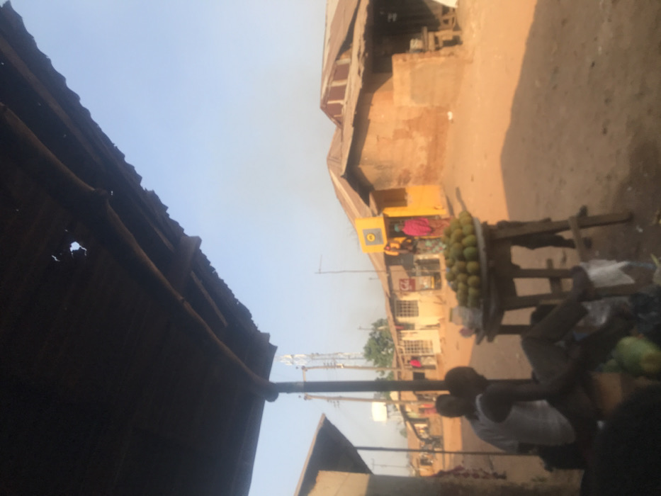 The image captures a street scene in Kwal, Nigeria, under a bright, clear sky
