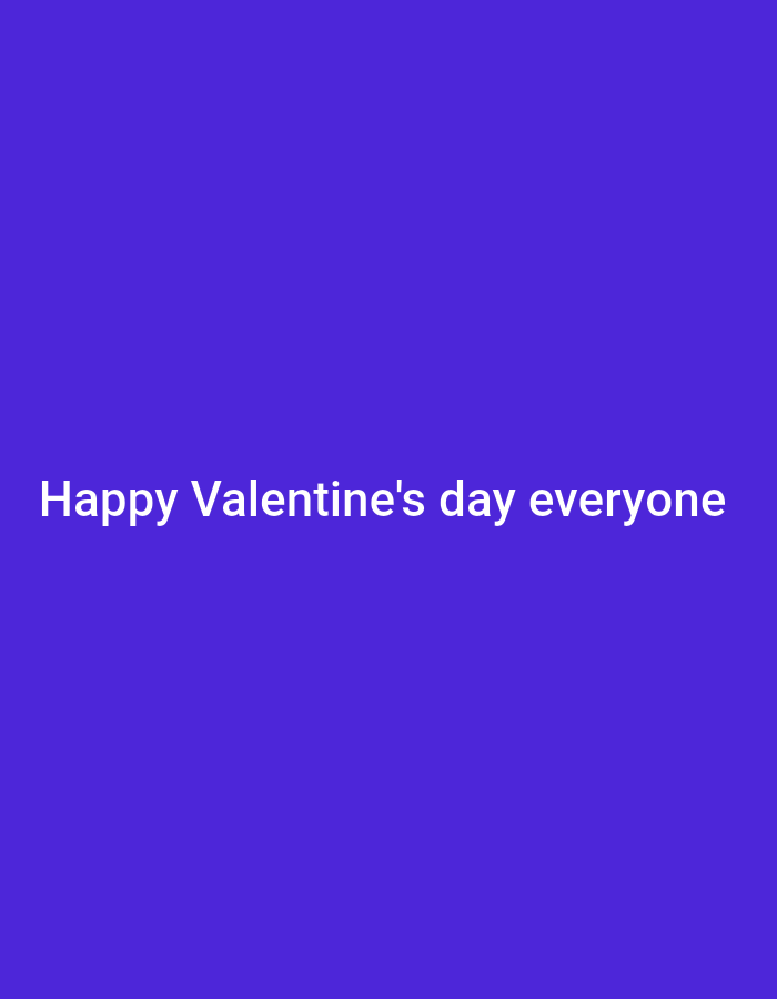 The image displays a solid indigo-purple digital background. Centered horizontally in the lower half of the frame, white sans-serif text reads "Happy Valentine's day everyone". No individuals, specific physical objects, actions, or interactions are discernible within the visual content. The environment is entirely digital and abstract. This scene is located in the city of Narayi, Nigeria.