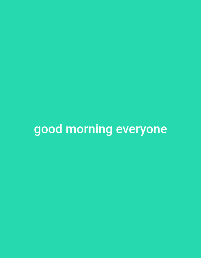 The image contains the text "good morning everyone" written in white on a solid turquoise background