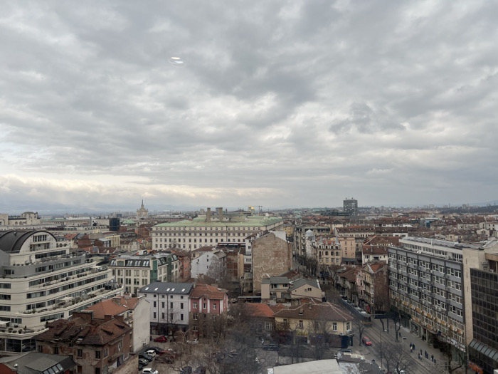 - "An elevated, wide-angle view captures a dense urban landscape in Sofia, Bulgaria, under an uniformly overcast grey sky" by FM-wihp63, licensed under CC BY 4.0