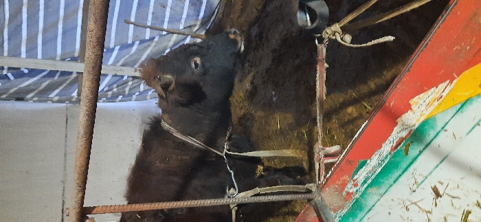- "The image displays a dark brown or black cow resting within an animal pen in Yangi-Khayat, Uzbekistan" by FM-0zE9q2, licensed under CC BY 4.0