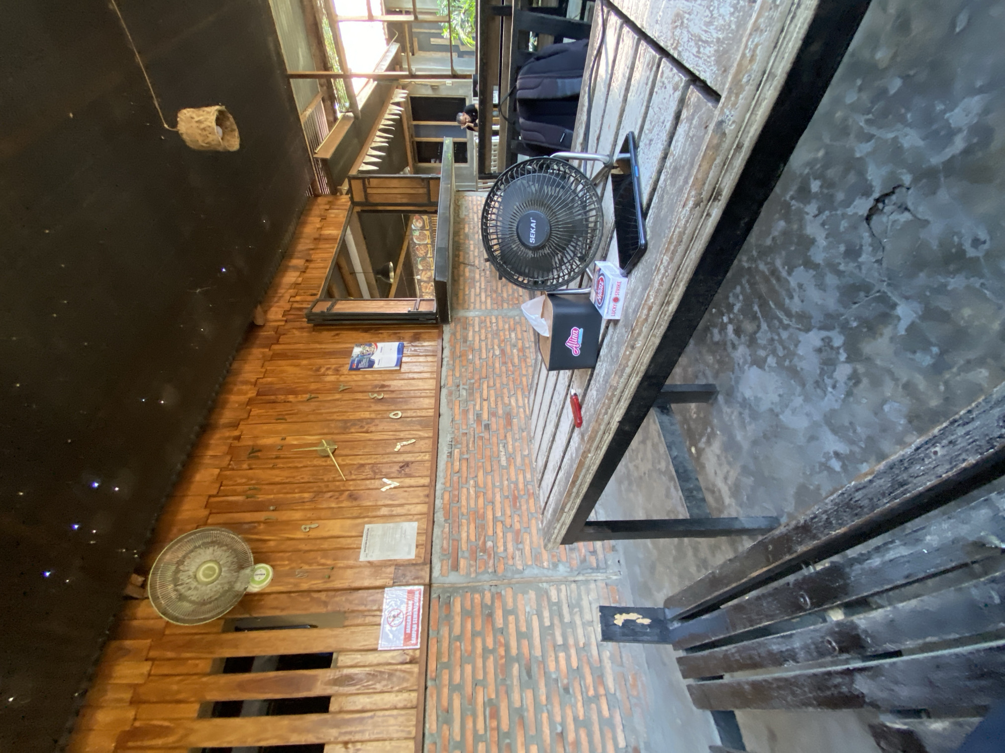 This image captures a semi-outdoor seating area in Tanjongkapai, Indonesia, likely a cafe or restaurant