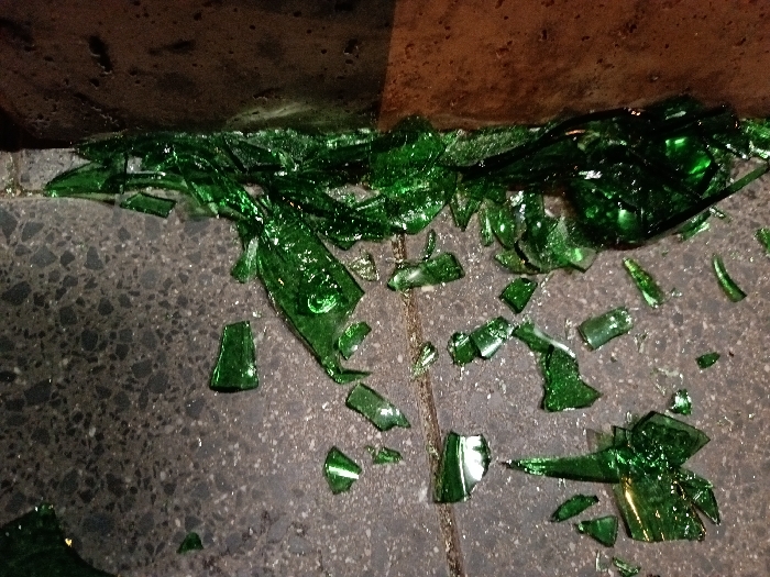 - "The scene, located in Leipzig, Germany, depicts numerous fragments of shattered green glass scattered across a dark gray, speckled ground surface" by FM-rFWs12, licensed under CC BY 4.0