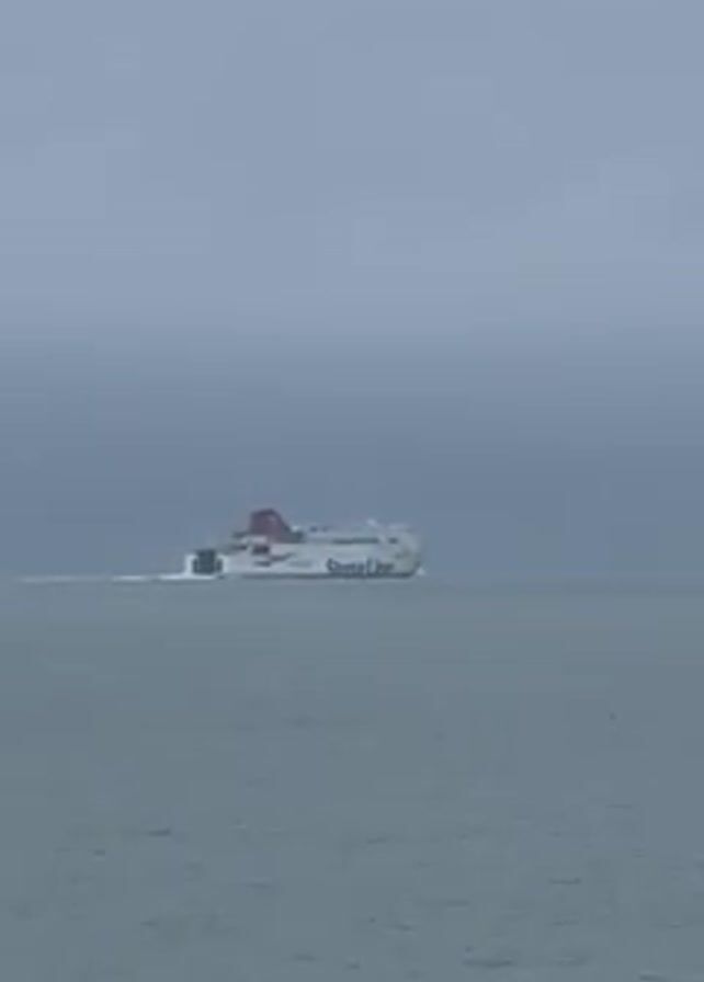 Stena Line ferry traveling on a body of water under an overcast sky