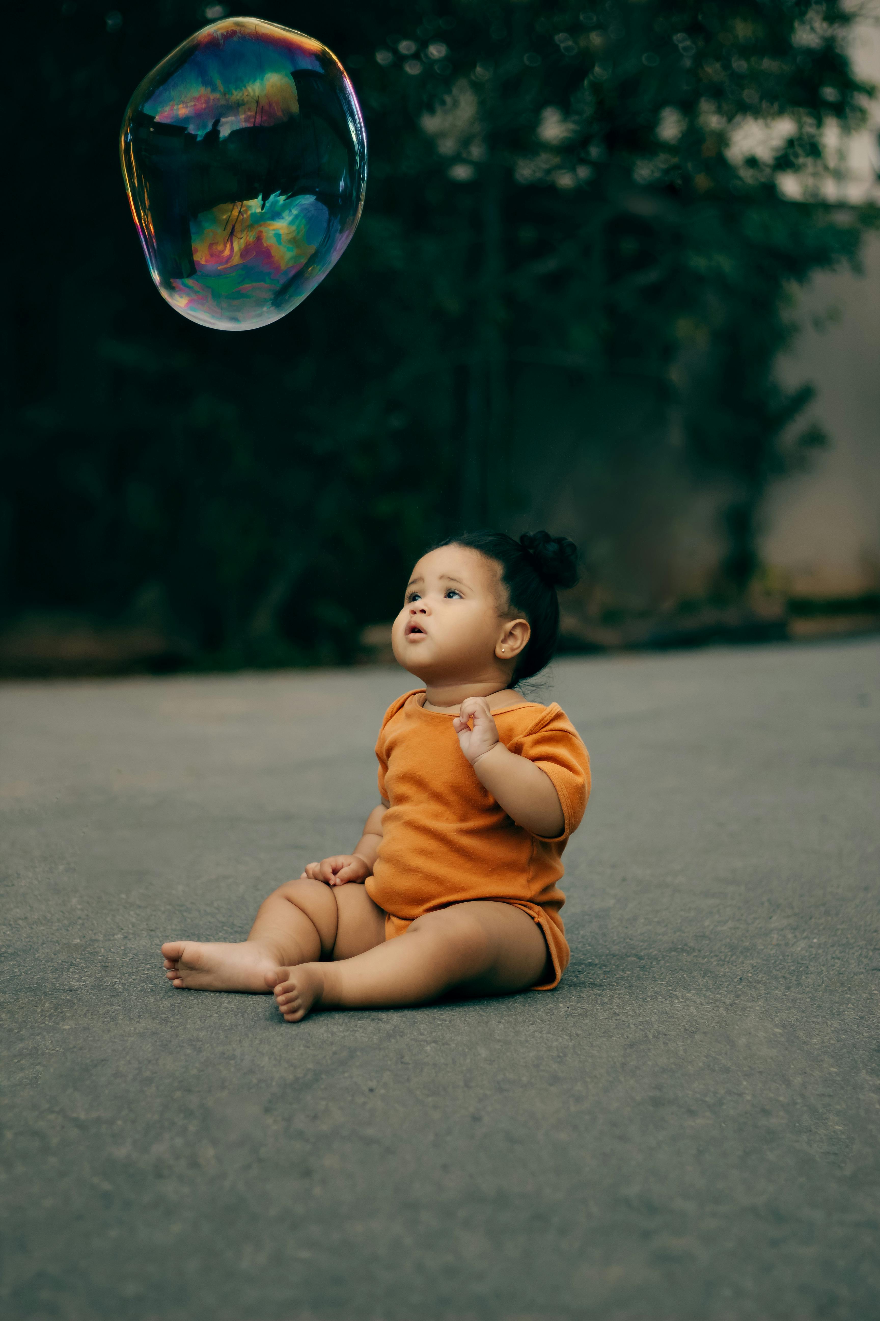 - "The image depicts a young girl, approximately two years old, sitting on a gray asphalt surface, wearing an orange shirt" by FM-FQ5EJ3, licensed under CC BY 4.0