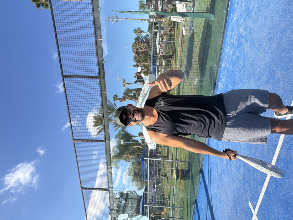 - "A male individual is depicted standing on a blue outdoor padel court under a clear blue sky" by FM-QOWpF2, licensed under CC BY 4.0