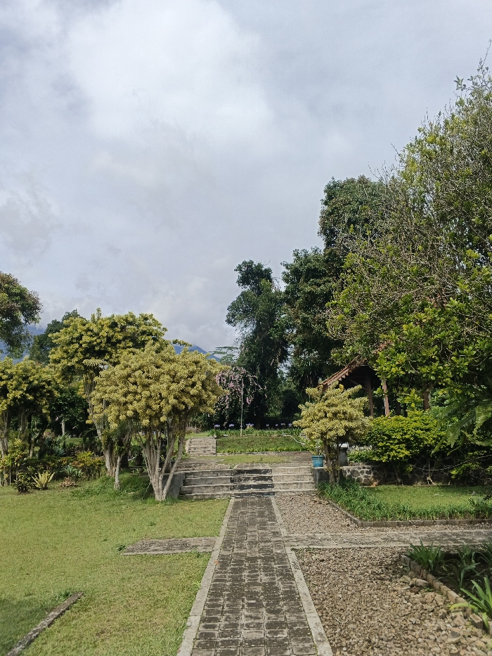 - "A tranquil garden pathway extends toward stone steps leading to a charming gazebo amidst lush greenery and trees" by FM-11vrG3, licensed under CC BY 4.0