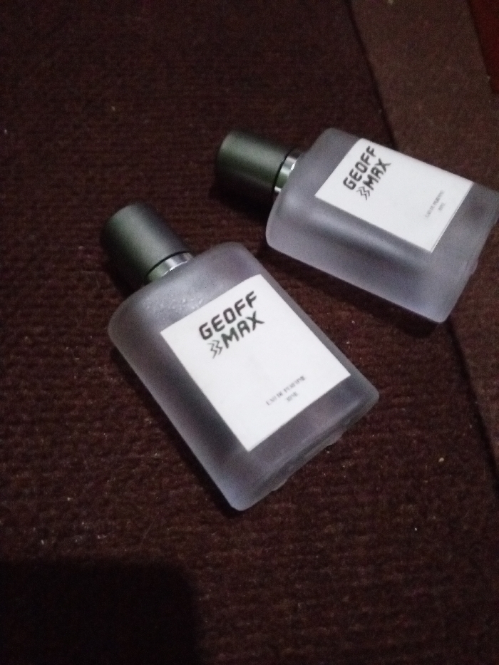 - "Two bottles of "GEOFF MAX" eau de parfum sit on a textured brown surface" by FM-sP5TE2, licensed under CC BY 4.0