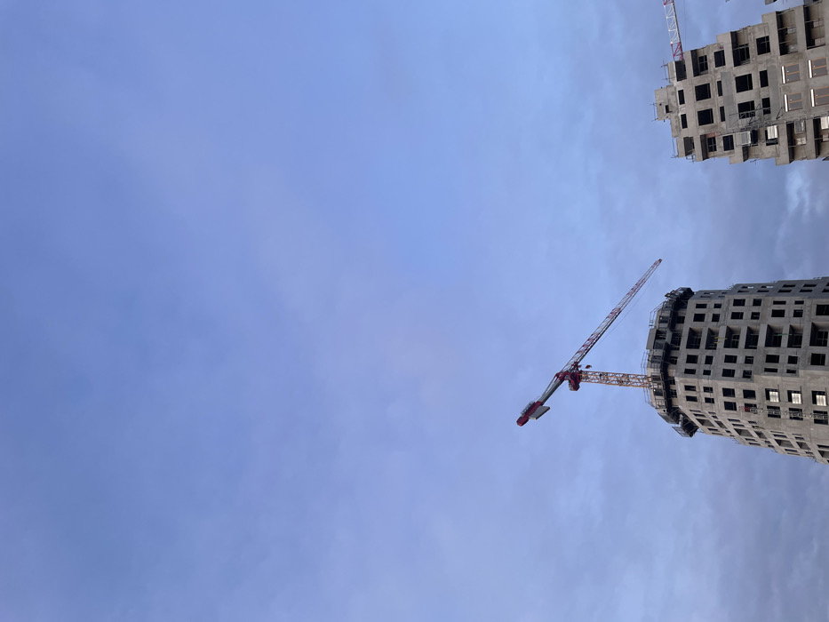 - "An upward shot captures two buildings under construction against a predominantly clear, pale blue sky" by FM-97h5e2, licensed under CC BY 4.0