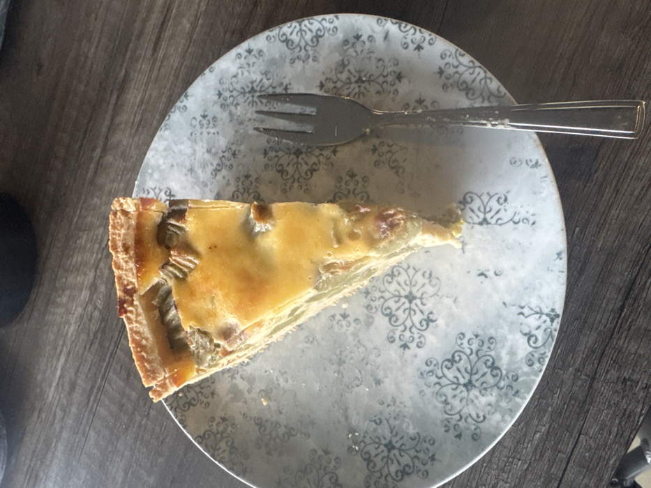 - "A slice of rhubarb tart rests on a patterned plate with a fork" by FM-9wXCm1, licensed under CC BY 4.0