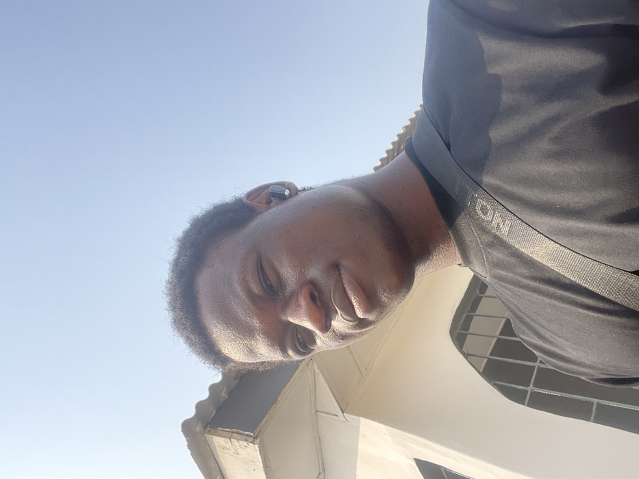 An outdoor, low-angle portrait depicts a young adult male in Itoga, Nigeria