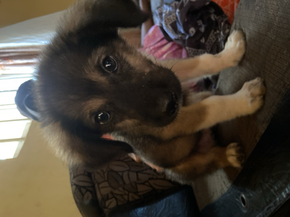 The image depicts a small, bi-color puppy situated indoors in Oba, Nigeria