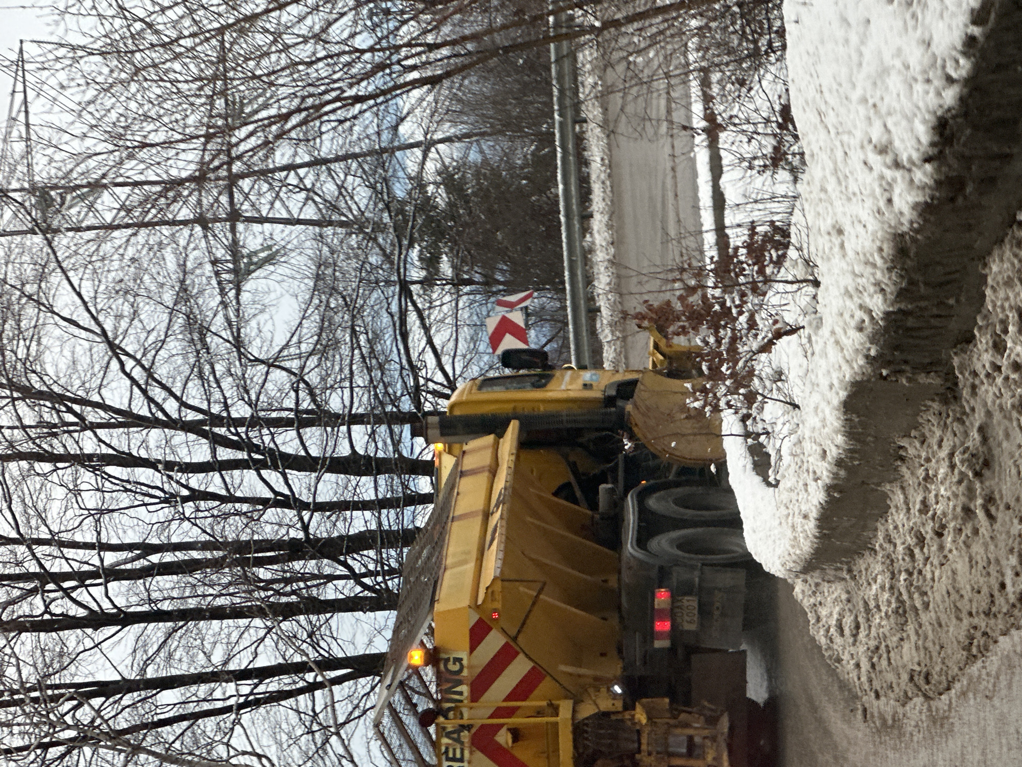 - "A yellow, multi-axle snow plow truck, bearing license plate SCDAX 6001, is positioned on a snow and slush-covered asphalt road in Barziya, Bulgaria" by FM-WuduE3, licensed under CC BY 4.0