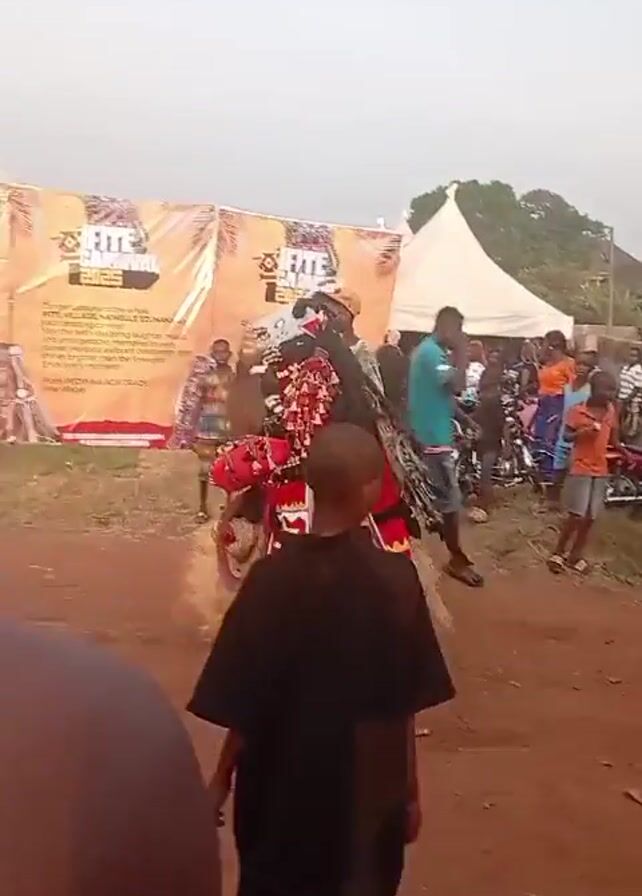 n Igbo masquerade at the Ifite Carnival 2023, a cultural event taking place outdoors