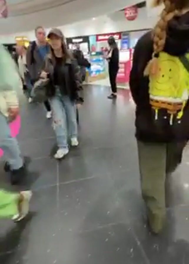 The video appears to be filmed from a first-person perspective, presumably by someone walking through a busy airport or shopping mall