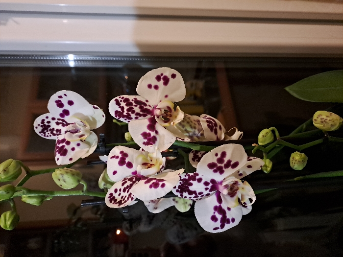 - "The image displays a close-up of a blooming orchid plant, specifically a Phalaenopsis type, situated indoors in Spanchevtsi, Bulgaria" by FM-K4MkE3, licensed under CC BY 4.0