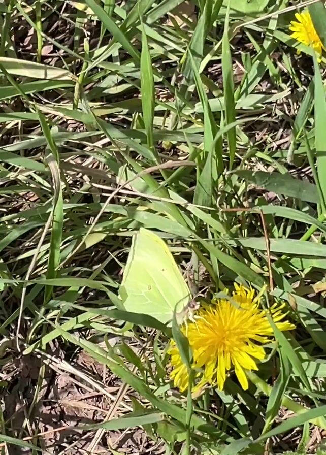 - "close-up of a brimstone butterfly, with pale yellow-green wings, resting on a vibrant yellow dandelion flower" by FM-i2V4x1, licensed under CC BY 4.0