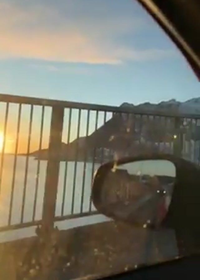 The video, filmed from the interior of a car, shows a drive across a bridge